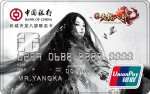 中國銀行攜手國內三大網絡游戲公司之一的搜狐暢游,推出以游戲《新天龍八部》為主題的聯(lián)名卡產品,以網絡游戲用戶、年輕群體為主推群體進行推廣。