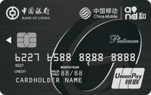 中銀長城中國移動信用卡是中國銀行及中國移動分別與萬事達卡國際組織、中國銀聯(lián)合作推出的聯(lián)名信用卡產(chǎn)品。該產(chǎn)品具有白金卡及金卡兩種產(chǎn)品等級,融合金融與通信服務優(yōu)勢,致力于滿足您對多樣化品質(zhì)生活的追求。