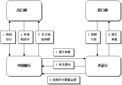 4.我行在收到承兌/承付后,客戶應(yīng)向我行提交業(yè)務(wù)申請(qǐng)書,將貼現(xiàn)款項(xiàng)入出口商賬戶。
