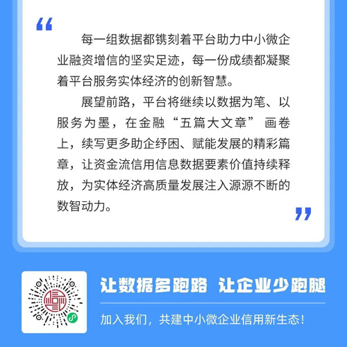 轉(zhuǎn)發(fā)“中國人民銀行征信中心”公眾號推文:全國中小微企業(yè)資金流信用信息共享平臺——“數(shù)”說平臺“一周年”