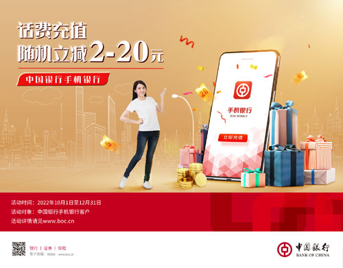 1.活動(dòng)期間,客戶僅通過中國(guó)銀行手機(jī)銀行進(jìn)行話費(fèi)充值交易方可享受隨機(jī)立減優(yōu)惠,活動(dòng)名額有限,先到先得,送完即止。