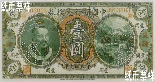 Following the issuance of redeemable notes bearing the portrait of Li Hongzhang in 1912, Bank of China issued redeemable notes bearing the portrait of Emperor Huang Di in one yuan, five yuan and ten yuan printed by American Bank Note Company for nationwide circulation.