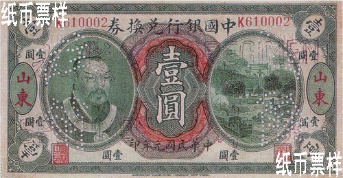 The Front of One-Yuan Shandong Local Redeemable Note Bearing the Portrait of Emperor Huang Di