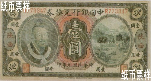 The Front of One-Yuan Shaanxi Local Redeemable Note Bearing the Portrait of Emperor Huang Di