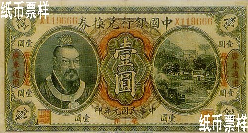 The Front of One-Yuan Hankou Local Redeemable Note Bearing the Portrait of Emperor Huang Di