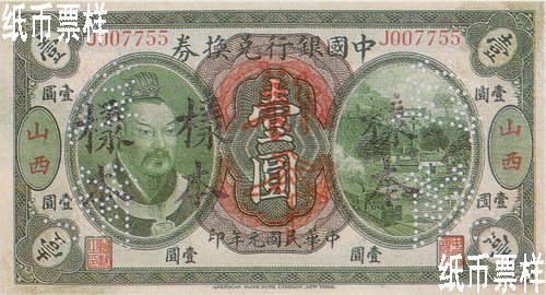 The Front of One-Yuan Shanxi Local Redeemable Note Bearing the Portrait of Emperor Huang Di