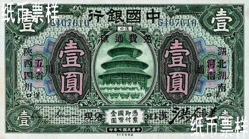 "The 7th Year of the Republic of China" printed on the front and "SEPTEMBER 1918" on the back |