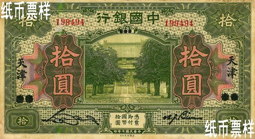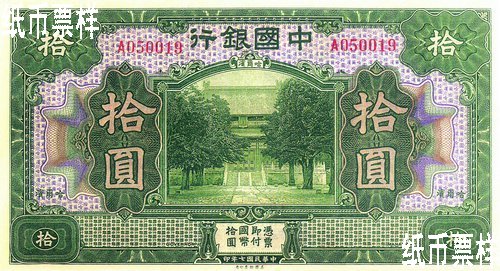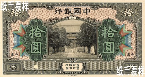The Dacheng Hall of Confucius Temple in Qufu City of Shandong Province printed on the front, and decorative patterns on the back |