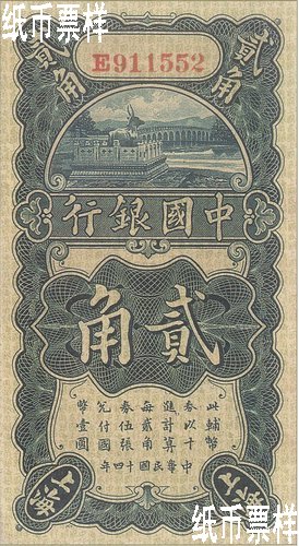 In June 1925, Bank of China issued a ten-yuan national currency note of Shanghai which was printed by the American Bank Note Company in 1924. In 1925, it also issued the lengthwise national currency notes of Shanghai in fractional denominations of 10 cents, 20 cents and 50 cents printed by Waterlow & Sons Limited, London. In 1926, it issued a five-yuan national currency note of Shanghai printed by American Bank Note Company.