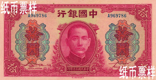 | Legal tender note bearing the portrait of Sun Yat-sen |