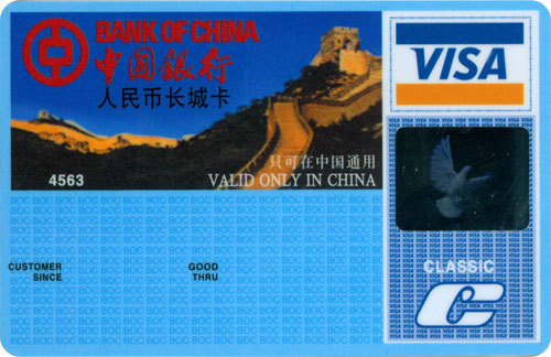 Bank of China issued the first Great Wall Visa RMB credit card in cooperation with VISA in August 1987.