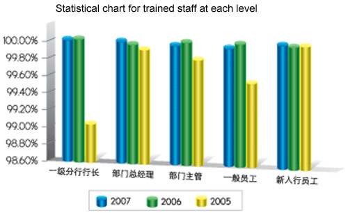 The staff turnover rate (turnover rate = number of staff replaced/total number of staff) was 1.22% in 2007, which figure marked a rational and stable staff structure as well as an important guarantee for the healthy and sustainable development of Bank of China.