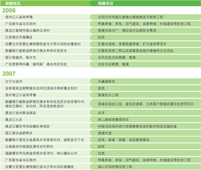 At the beginning of 2008, a rare snow and ice storm attacked many regions in southern China and posed great challenges to local people's life. Bank of China, together with its staff, responded swiftly and donated over RMB 12 million to these regions. In order to help the victims regain their normal life and production, Bank of China opened a "Green Finance Channel", providing financial support for rescue services. Branches in disaster areas overcame various difficulties to ensure normal operation of their outlets, which gained wide appraisal from the society.