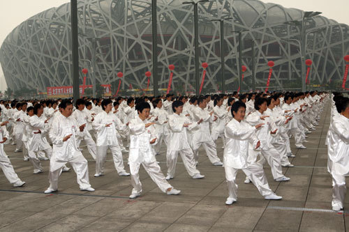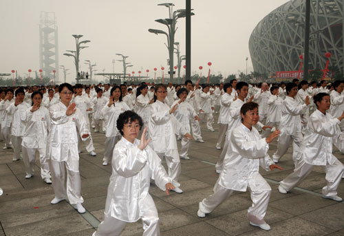 The first "National Fitness Day" campaign is in full swing on August 8, 2009. The Taiji performance with 34,000 participants creates a new Guinness world record. As a co-organizer, Bank of China takes an active part in the opening ceremony and provides full support during the event. The bank sends a team of 500 performers, as the only corporate team, to join the Taiji performance. The previous Guinness World Record of Taiji group performance was created by 30,648 performers on the opening ceremony of the 22nd Peony Festival in Henan Luoyang on April 1, 2004.