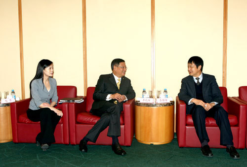 Co-organized by Chinese Academy of Sciences (CAS) and Bank of China, the 2nd Tan Kah Kee Science Award Symposium is held at Bank of China Head Office Building on November 11, 2009. Li Lihui, President of Bank of China has a cordial talk with CAS Vice President Li Jinghai, CAS Secretary-General Wang Enge and other leaders.