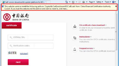 The customer needs to download the ActiveX of Certificate Download and Online Banking Signature