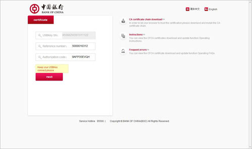 Tip: Please make sure that the USBKey is connected to your computer in the whole process of certificate download or update.