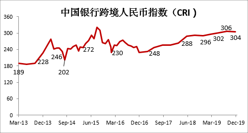 中國(guó)銀行發(fā)布2019年四季度跨境人民幣指數(shù)(CRI)。結(jié)果顯示,四季度CRI指數(shù)為304,較三季度回落2點(diǎn),高于預(yù)測(cè)值4點(diǎn)。